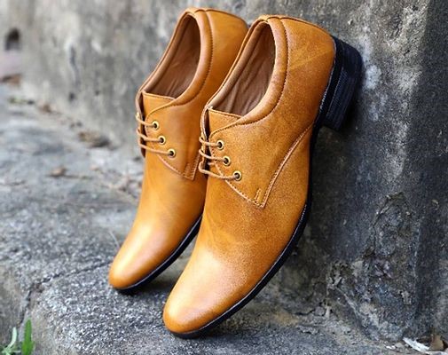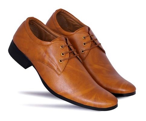 Men's Synthetic Leather Derby Tan Color Formal Shoes