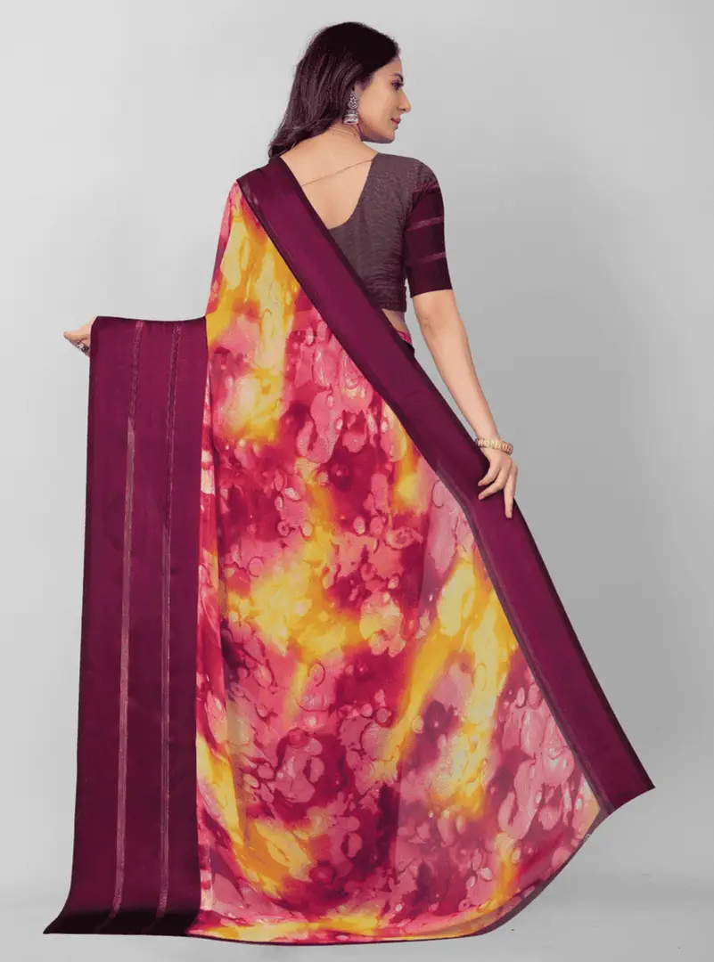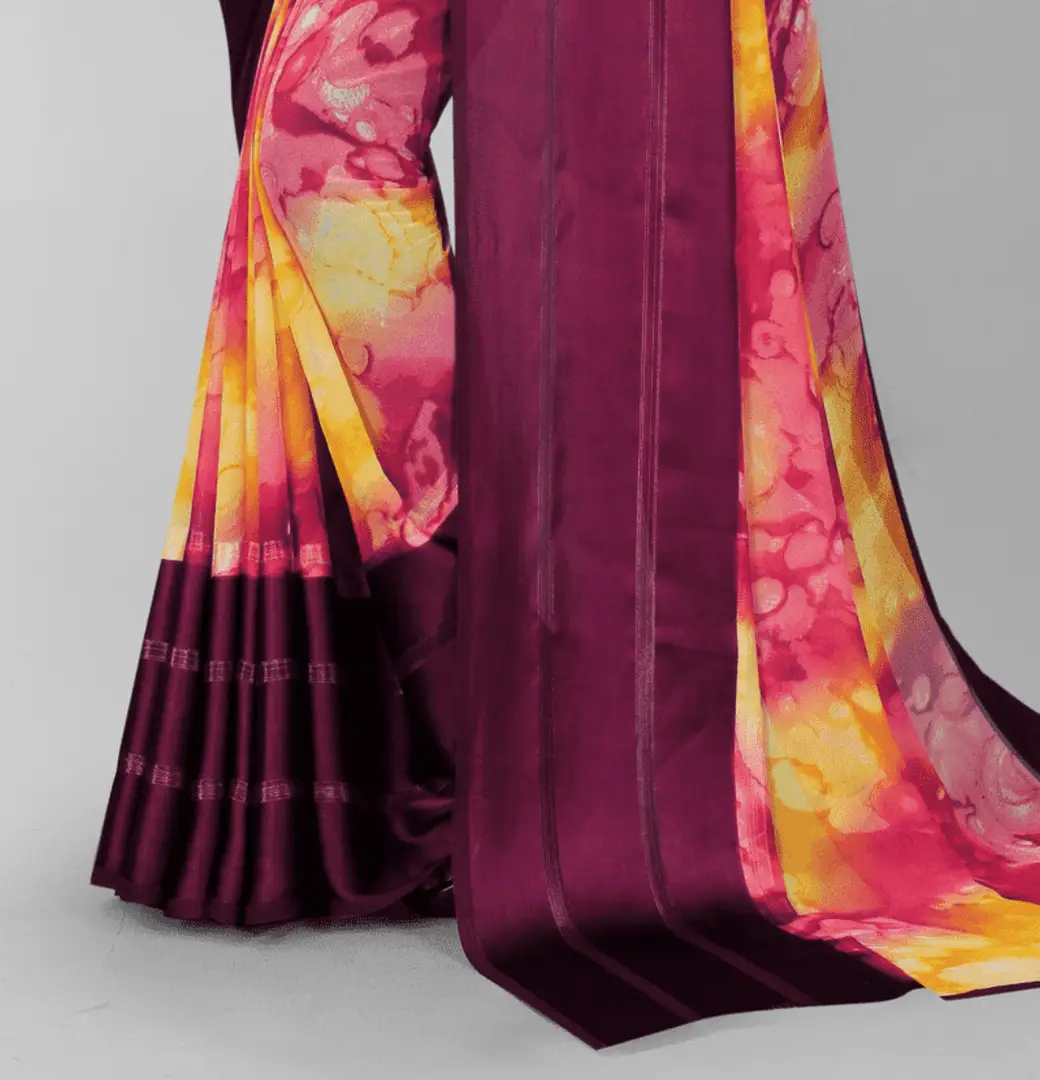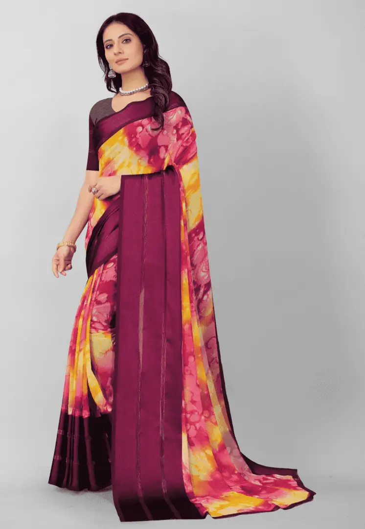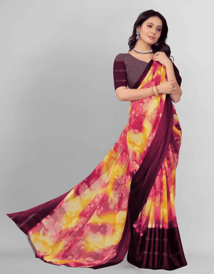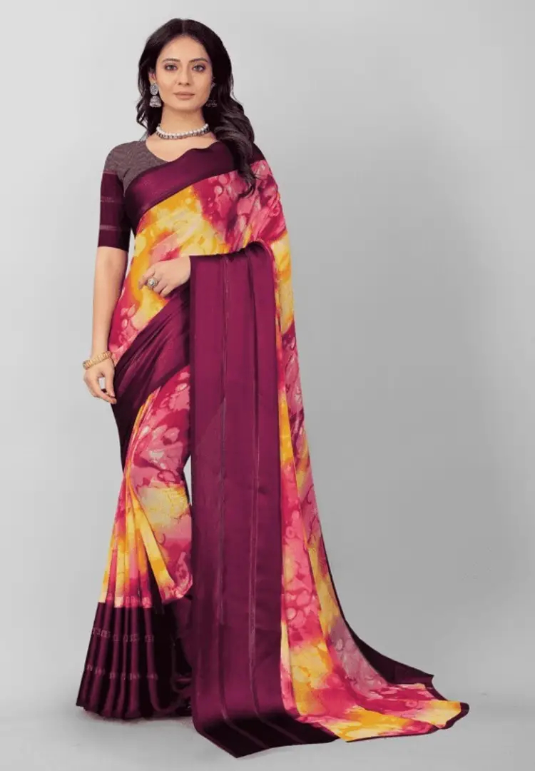 ATTIRIS Womens Georgette Satin Printed Saree With Blouse Piece