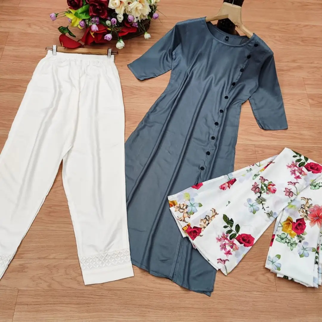 Attractive Rayon Kurta, Bottom And Dupatta Set