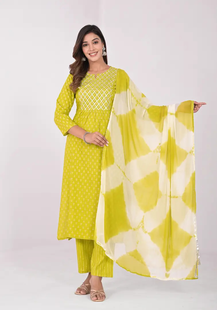 Attractive Yellow Viscose Rayon Kurta Pant With Dupatta Set For Women