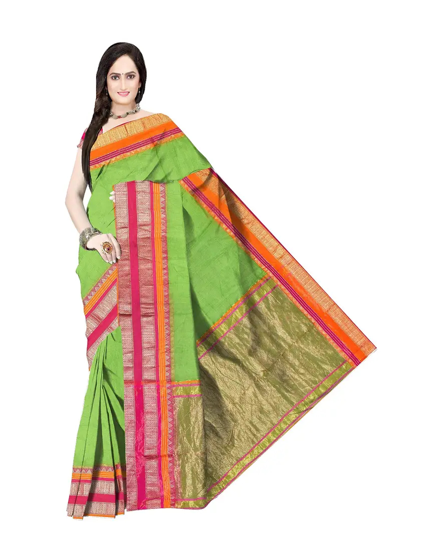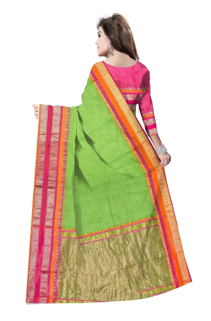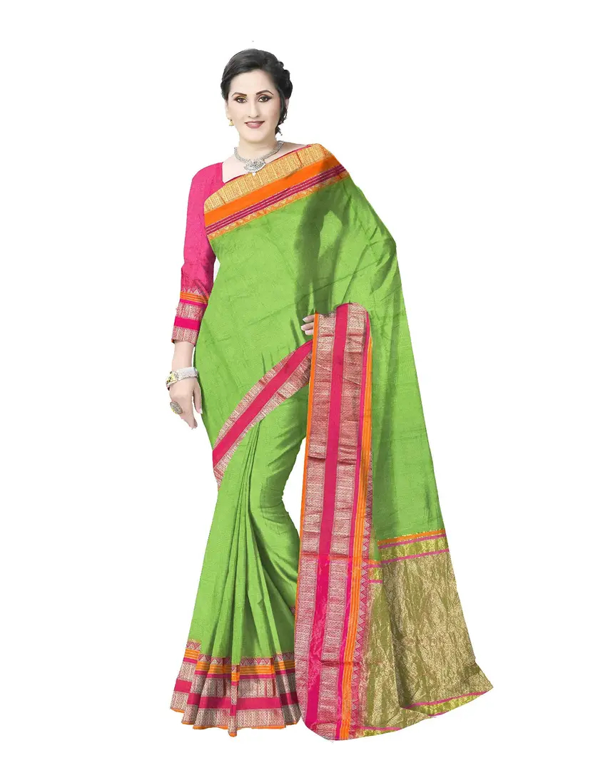 Avushanam Jacquard Border Zari Work Resham Kota Saree With Blouse Piece (Green) - D391