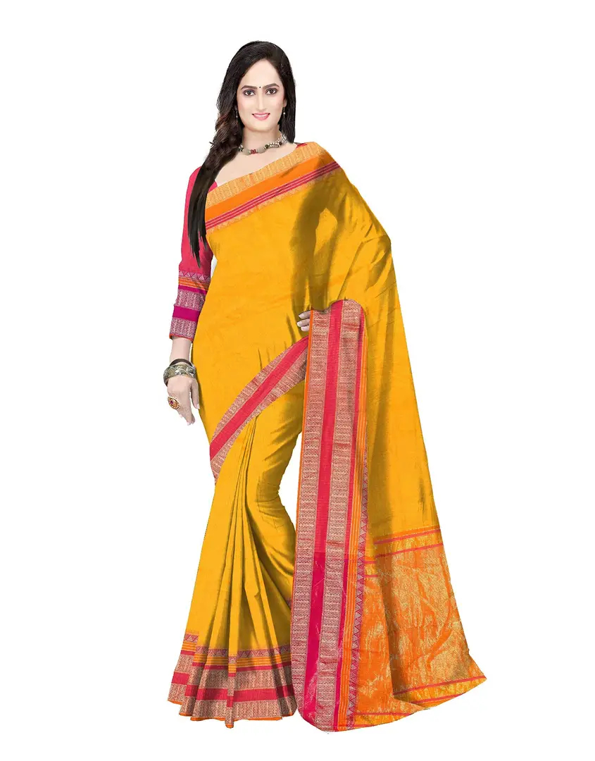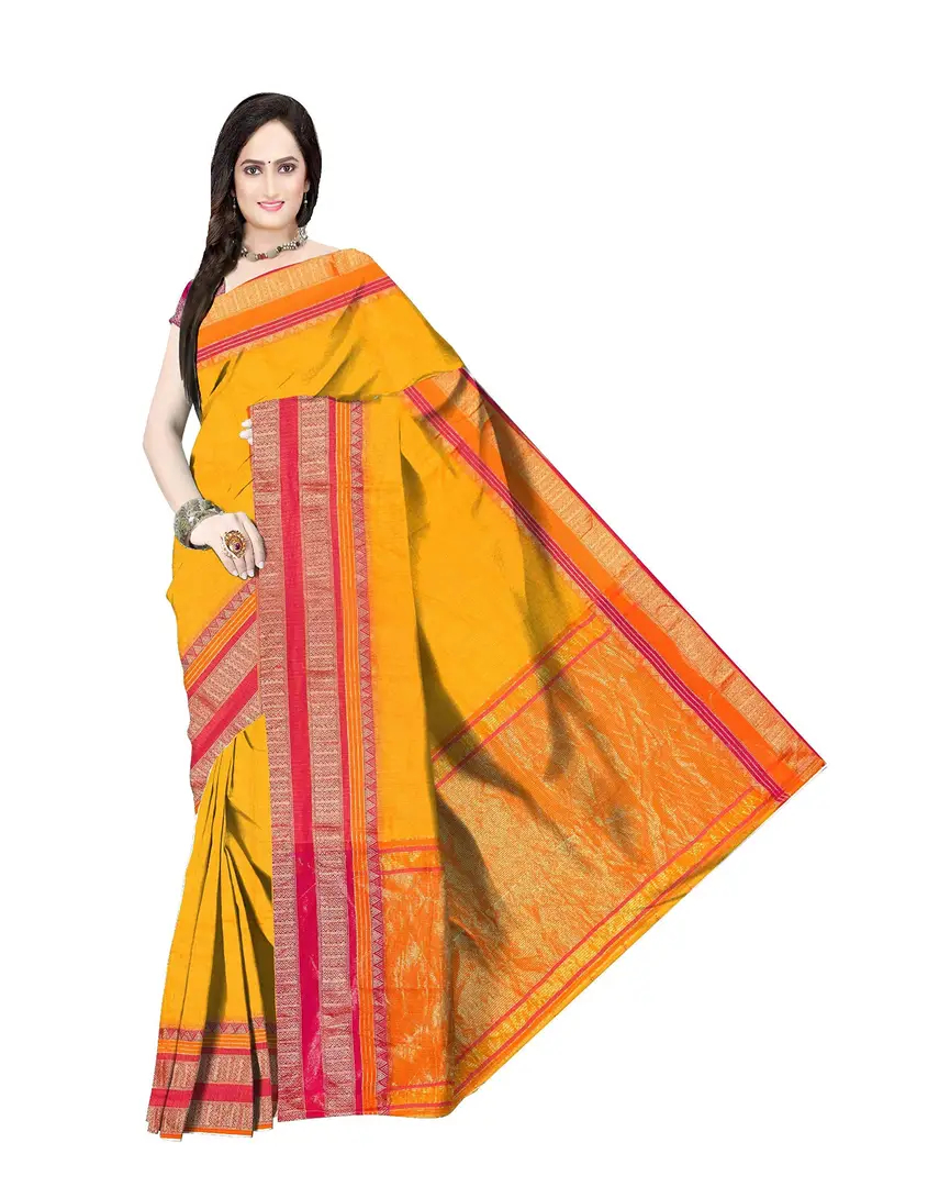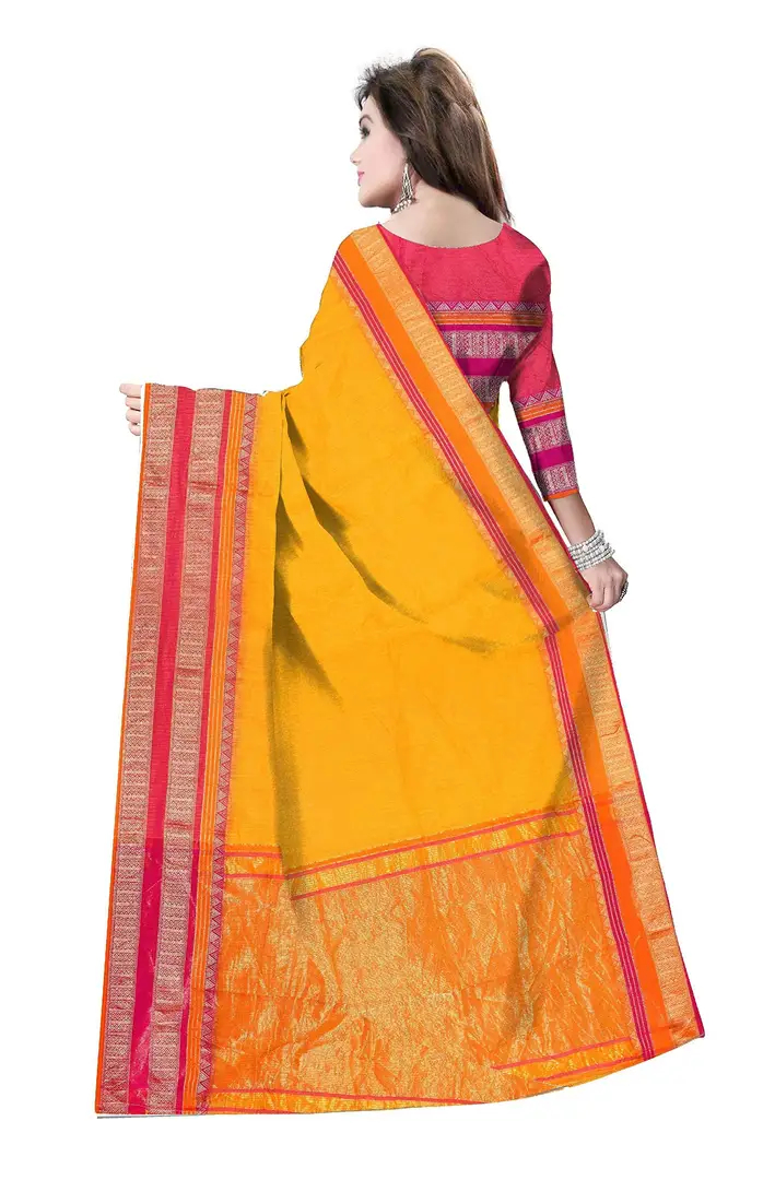 Avushanam Jacquard Border Zari Work Resham Kota Saree With Blouse Piece (Yellow) - D289