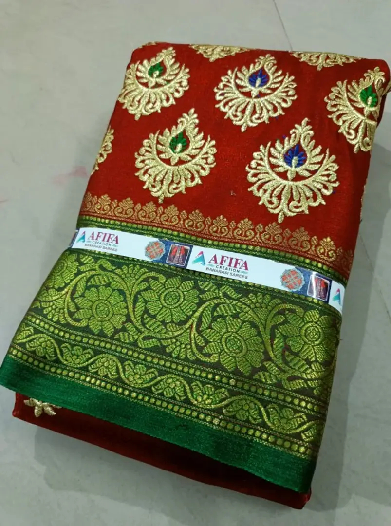 Banarasi Satin Silk Embroidered Sarees With Blouse Piece