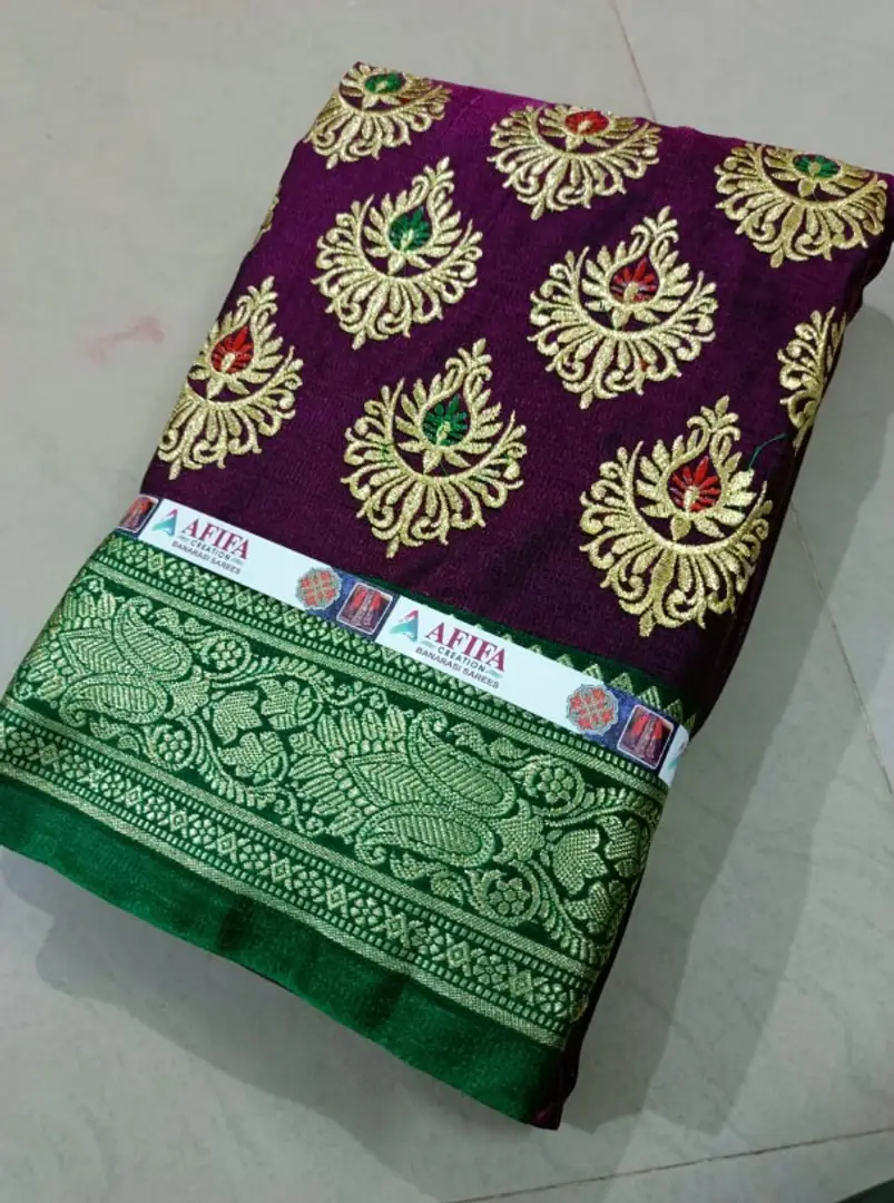 Banarasi Satin Silk Embroidered Sarees With Blouse Piece