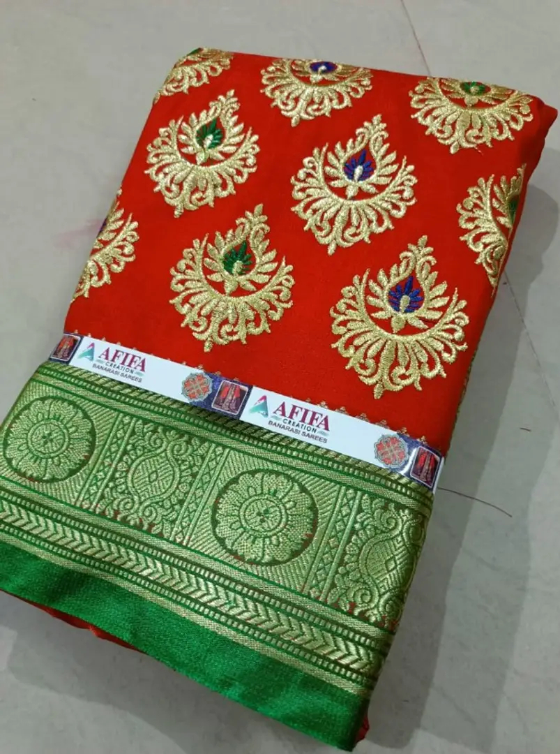 Banarasi Satin Silk Embroidered Sarees With Blouse Piece