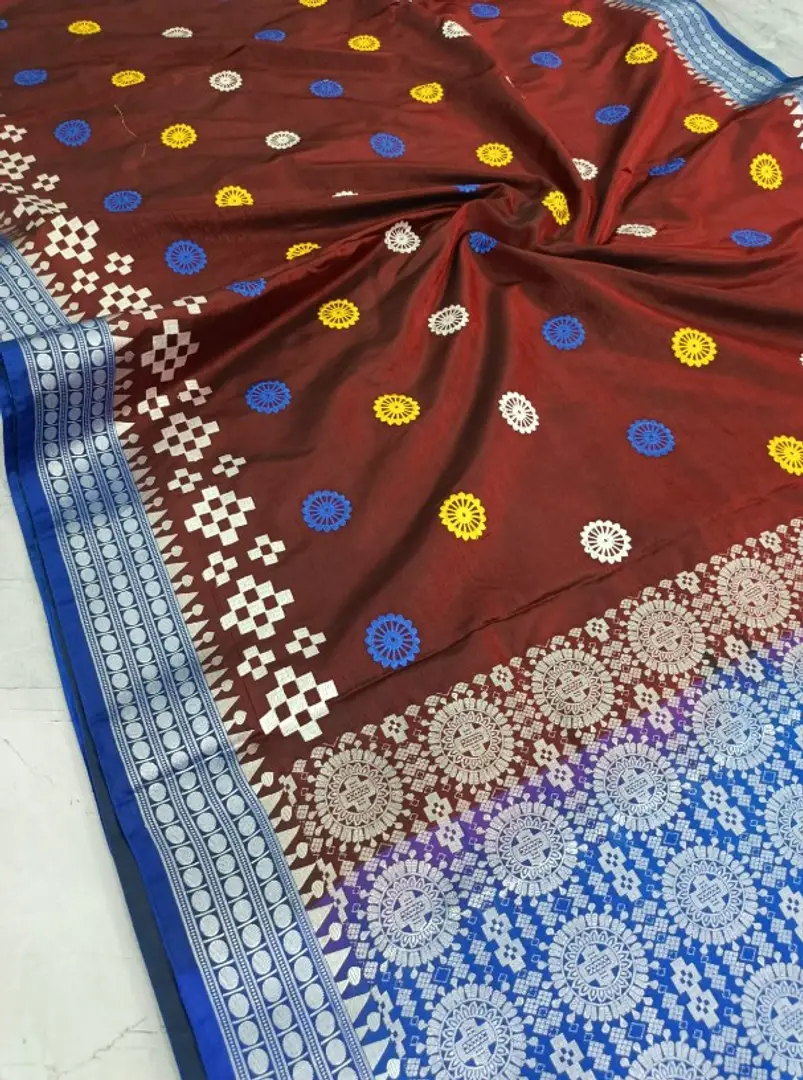 Banarasi Satin Silk Pasapalli Embroidery work sambhalpuri Saree with Blouse Piece