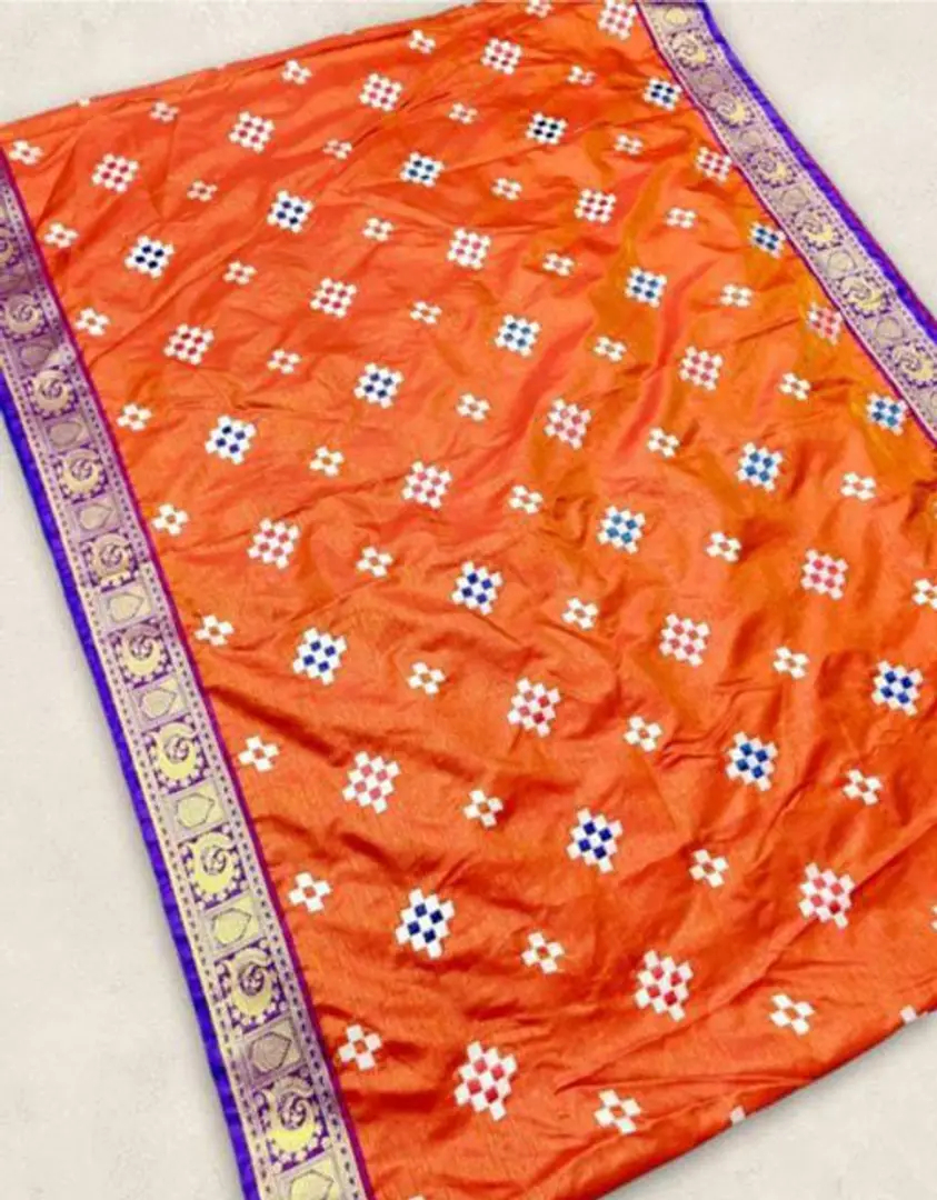 Banarasi Satin Silk Resham Work Embroidery Sarees With Blouse Piece