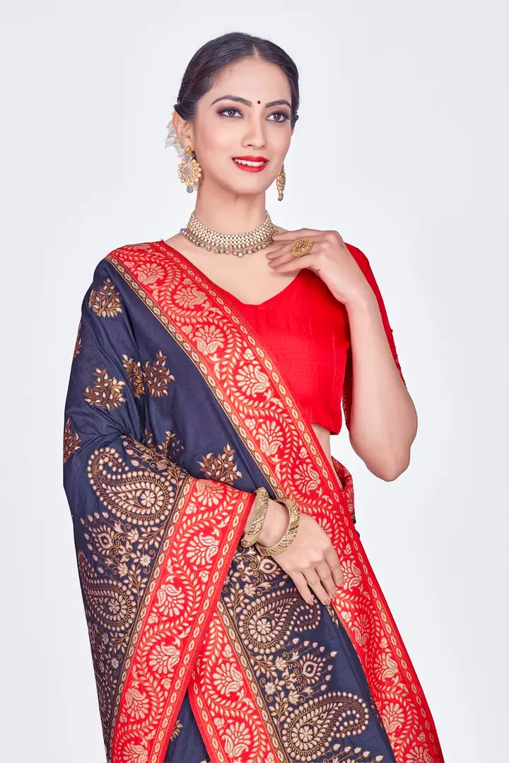 Beautiful Polyester Jacquard Saree With Blouse Piece For Women