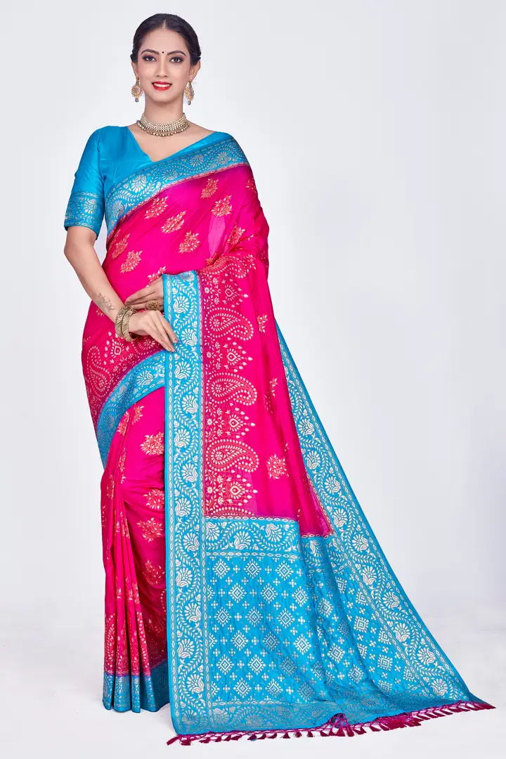 Beautiful Polyester Jacquard Saree With Blouse Piece For Women