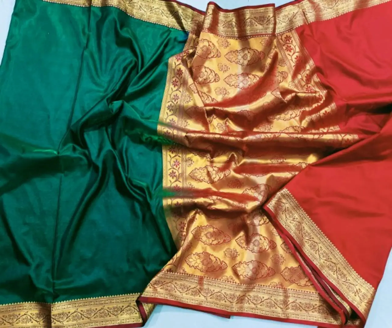 Beautiful Banarasi Satin Silk Zari Woven Saree With Blouse Piece