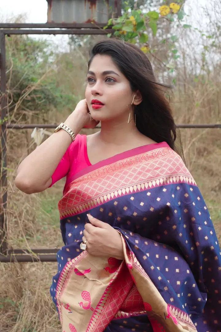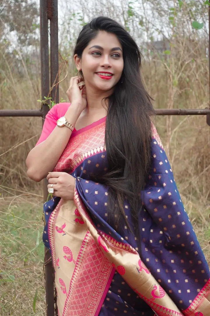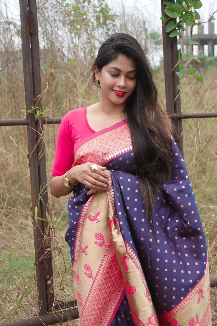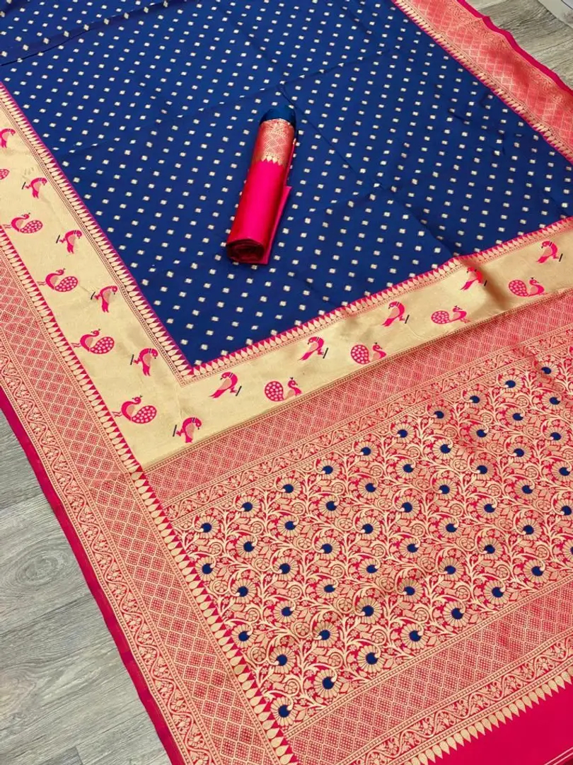 Beautiful Blue Banarasi Silk Jacquard Saree With Blouse Piece For Women