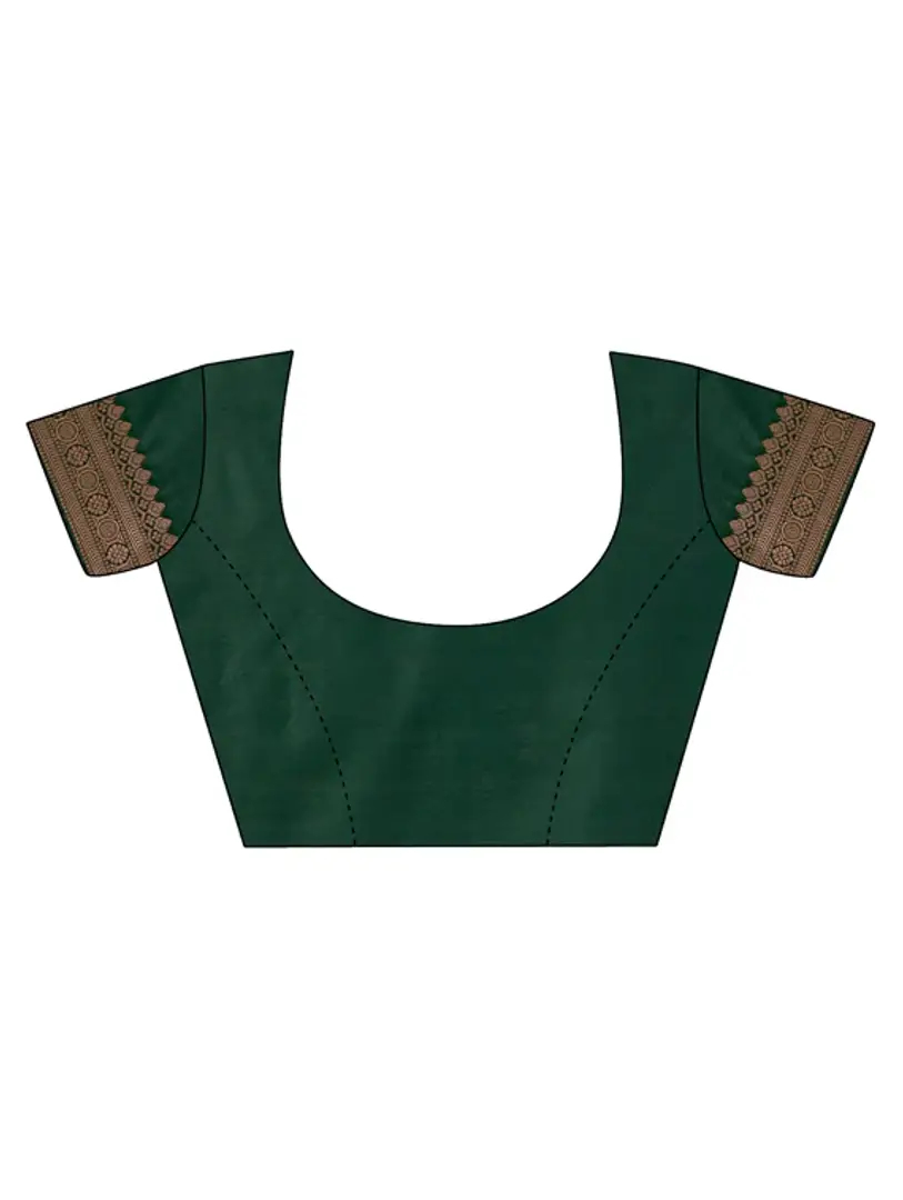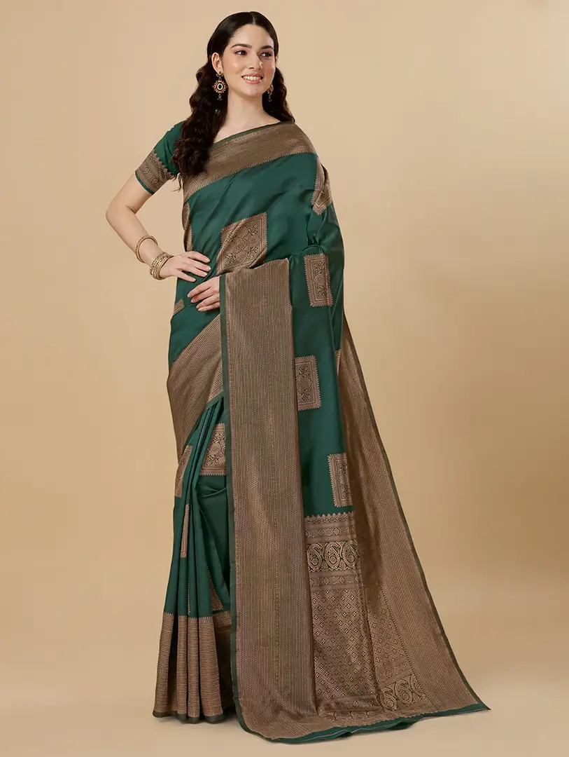 Beautiful Green Banarasi Silk Jacquard Saree With Blouse Piece For Women