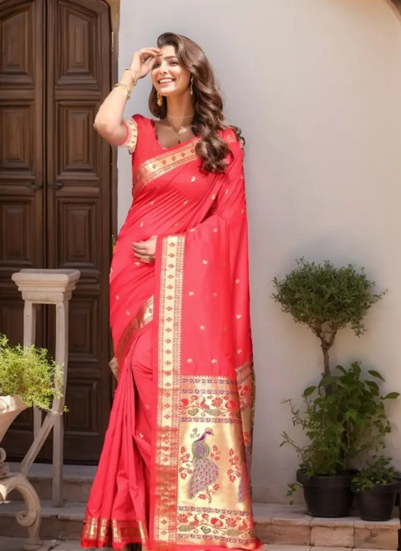 Beautiful Paithani Silk Saree With Blouse Piece