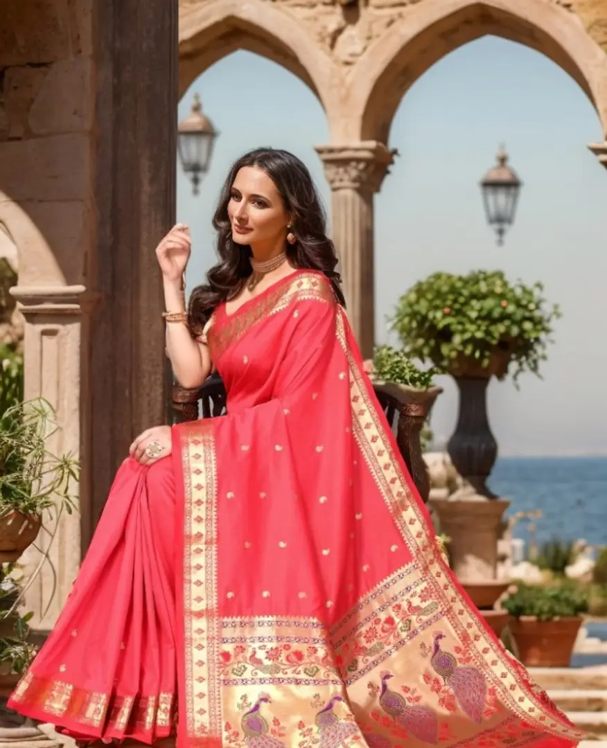 Beautiful Paithani Silk Saree With Blouse Piece