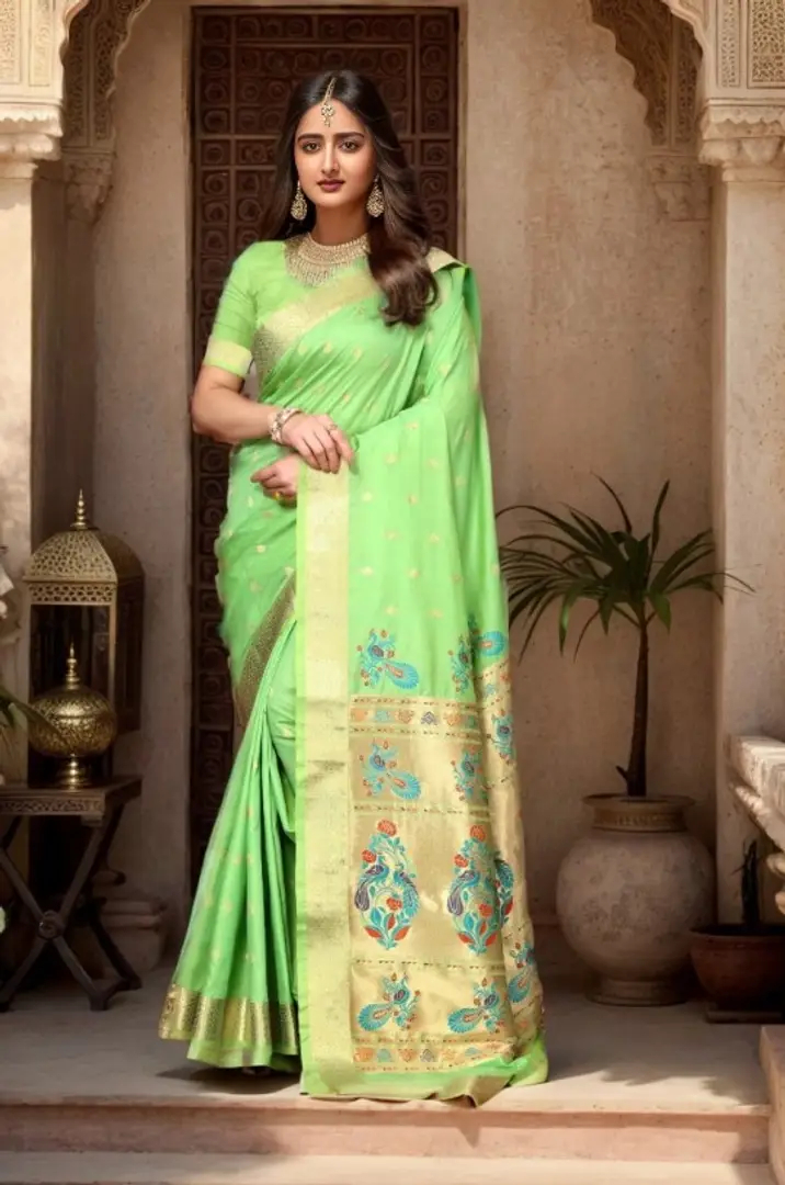 Beautiful Paithani Silk Saree With Blouse Piece