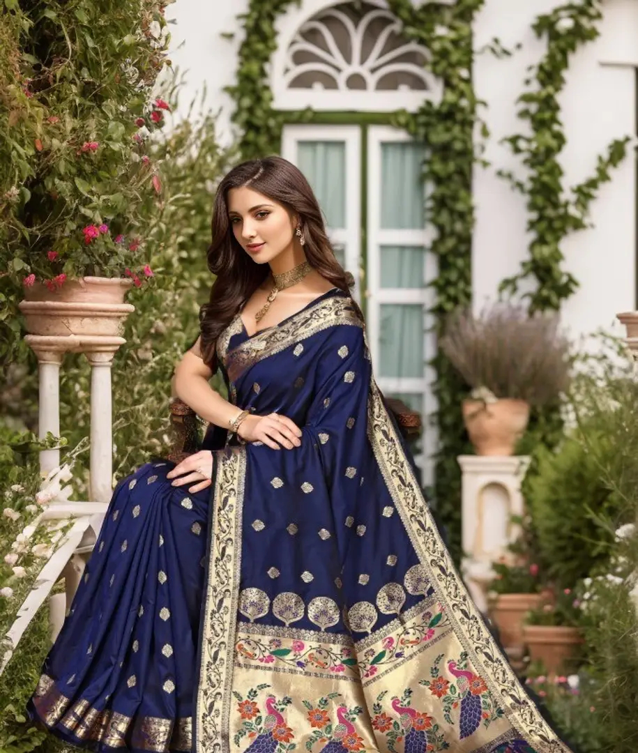 Beautiful Paithani Silk Saree With Blouse Piece