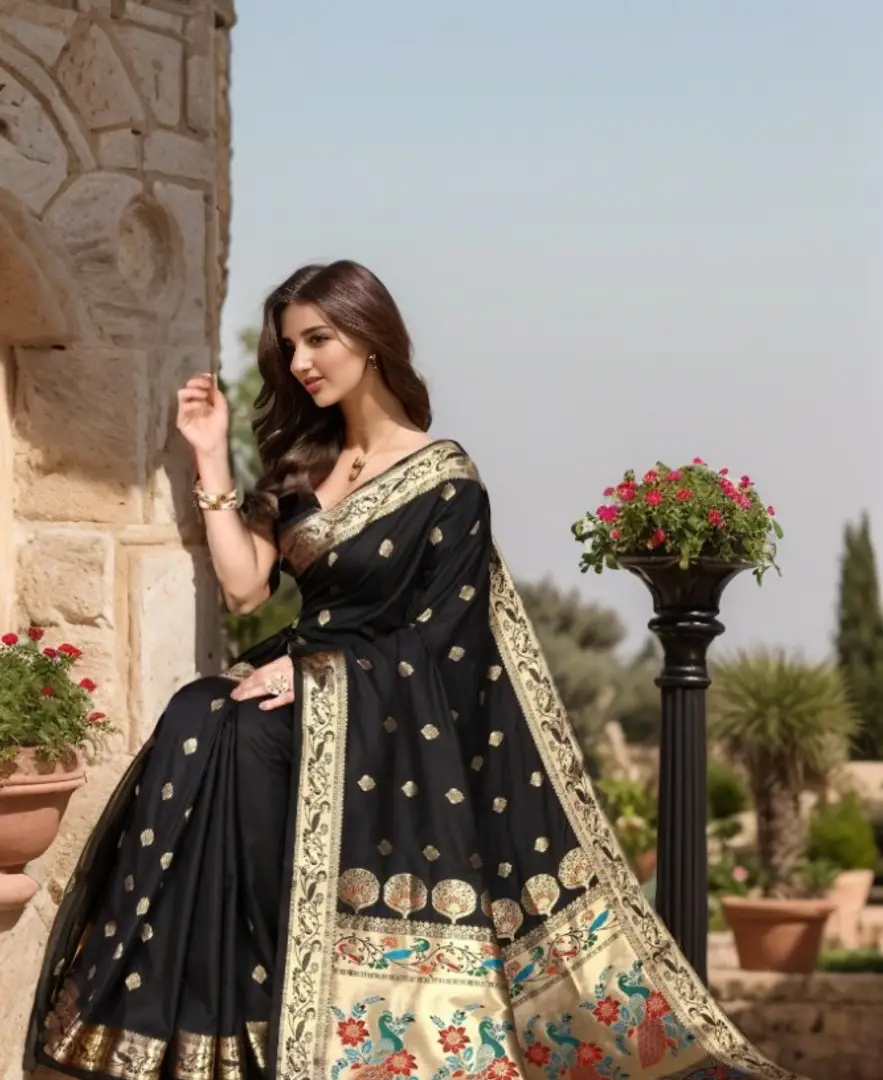 Beautiful Paithani Silk Saree With Blouse Piece