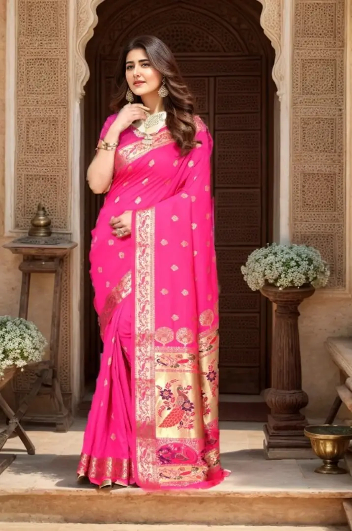 Beautiful Paithani Silk Saree With Blouse Piece