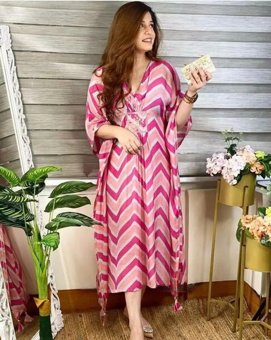 Beautiful Rayon Printed Kaftan Kurti With Lace For Women