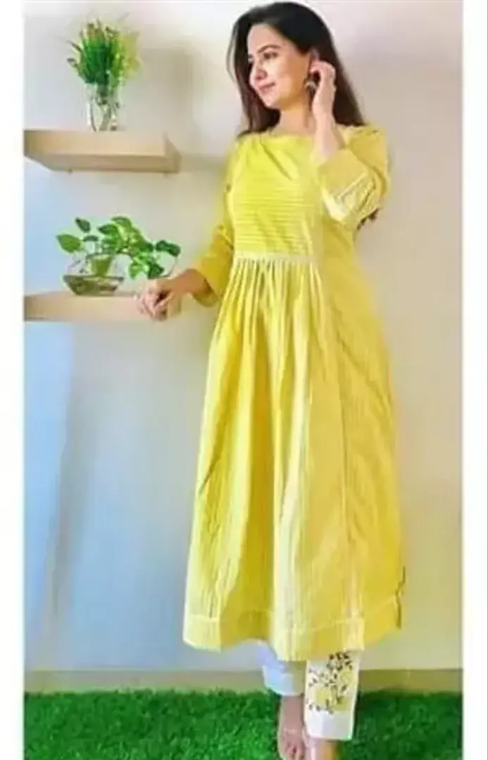 Beautiful Yellow Rayon Kurta Bottom Set For Women