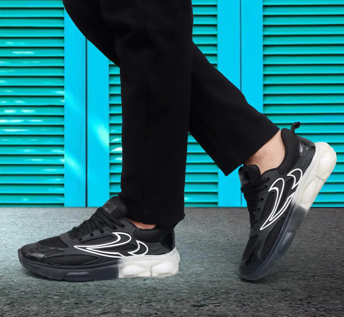 FIGOR Men's Black Mesh Stylish/Comfortable/Running Lace-Ups Sports Shoes
