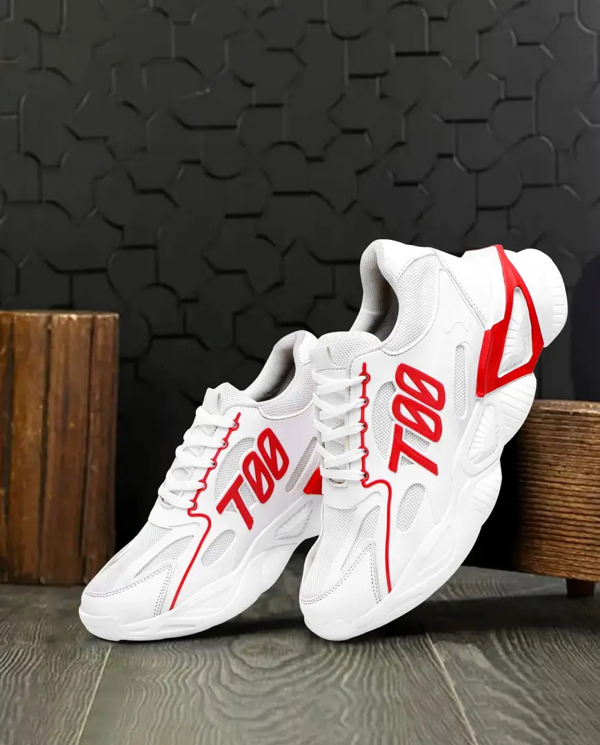 FIGOR Men's White Mesh Stylish/Comfortable Lace-Up Sports Shoes