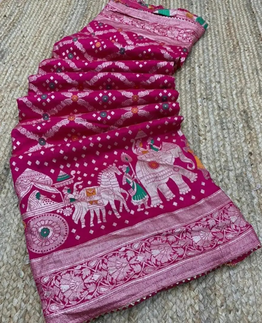 Bridal Chanderi Cotton Bandhani Jacquard Weaving Saree With Blouse Piece