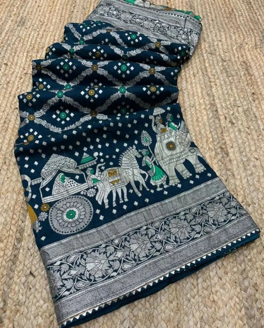 Bridal Chanderi Cotton Bandhani Jacquard Weaving Saree With Blouse Piece