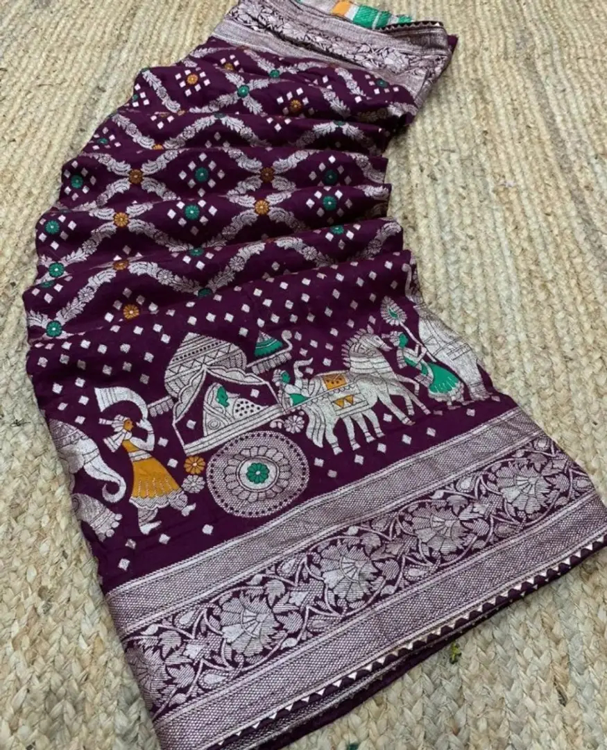 Bridal Chanderi Cotton Bandhani Jacquard Weaving Saree With Blouse Piece