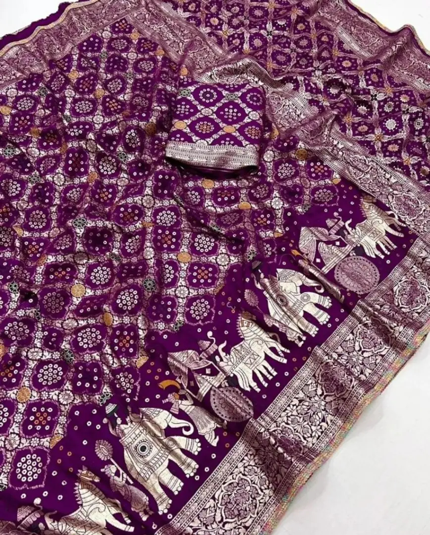 Bridal Chanderi Cotton Bandhani Jacquard Weaving Saree With Blouse Piece