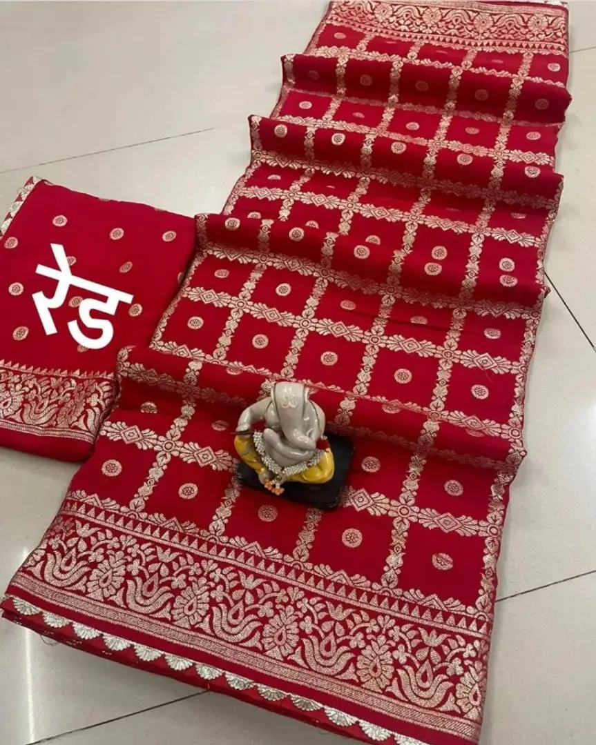 Chanderi Cotton Jacquard Zari Weaving Sarees With Blouse Piece