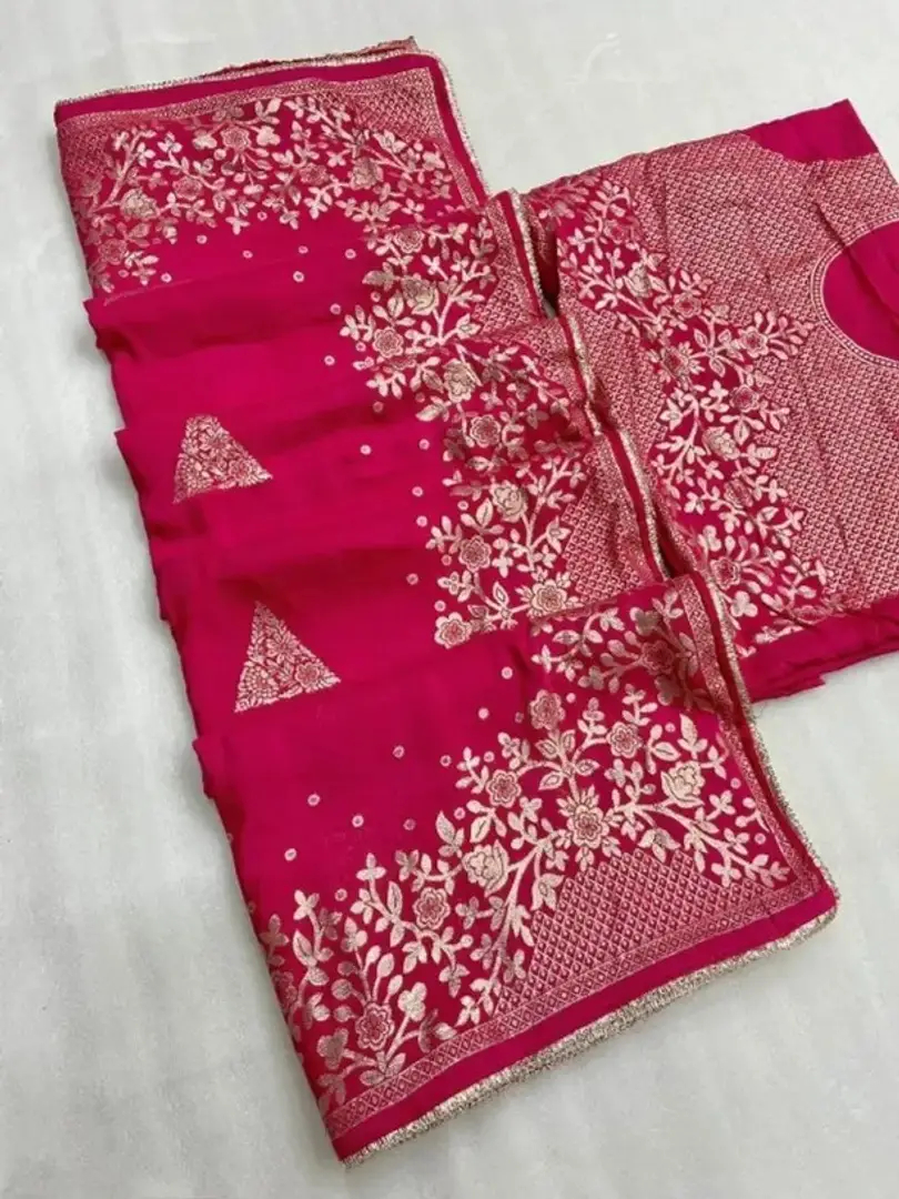 Chanderi Silk Woven Design Lace Border Sarees With Blouse Piece