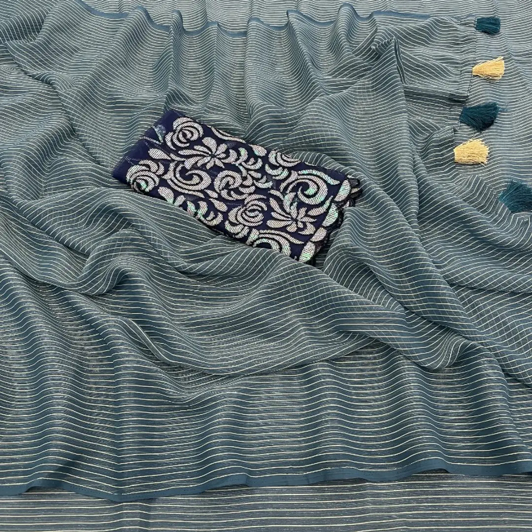 Chiffone Saree With Two Tone Soft Fabric With Contrast Blouse.