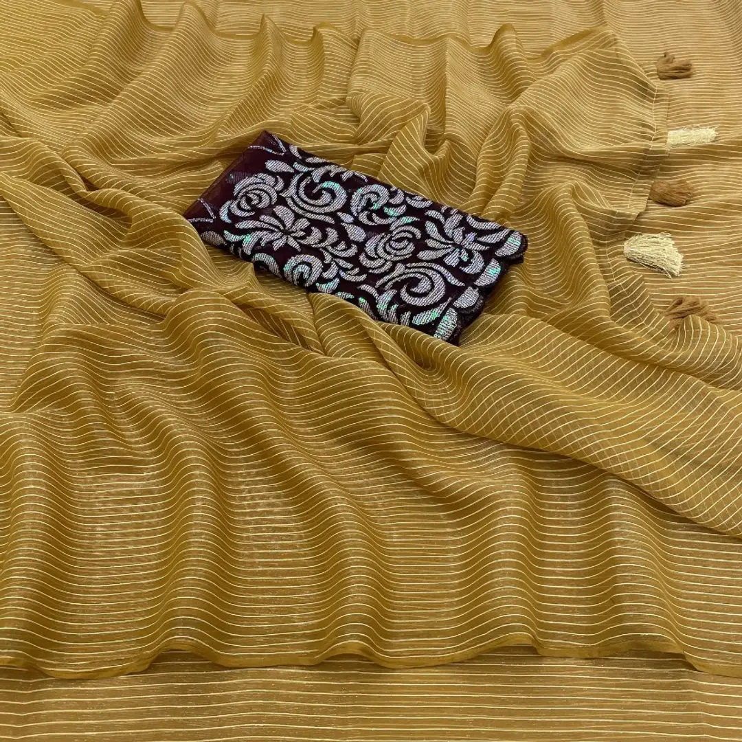 Chiffone Saree With Two Tone Soft Fabric With Contrast Blouse.