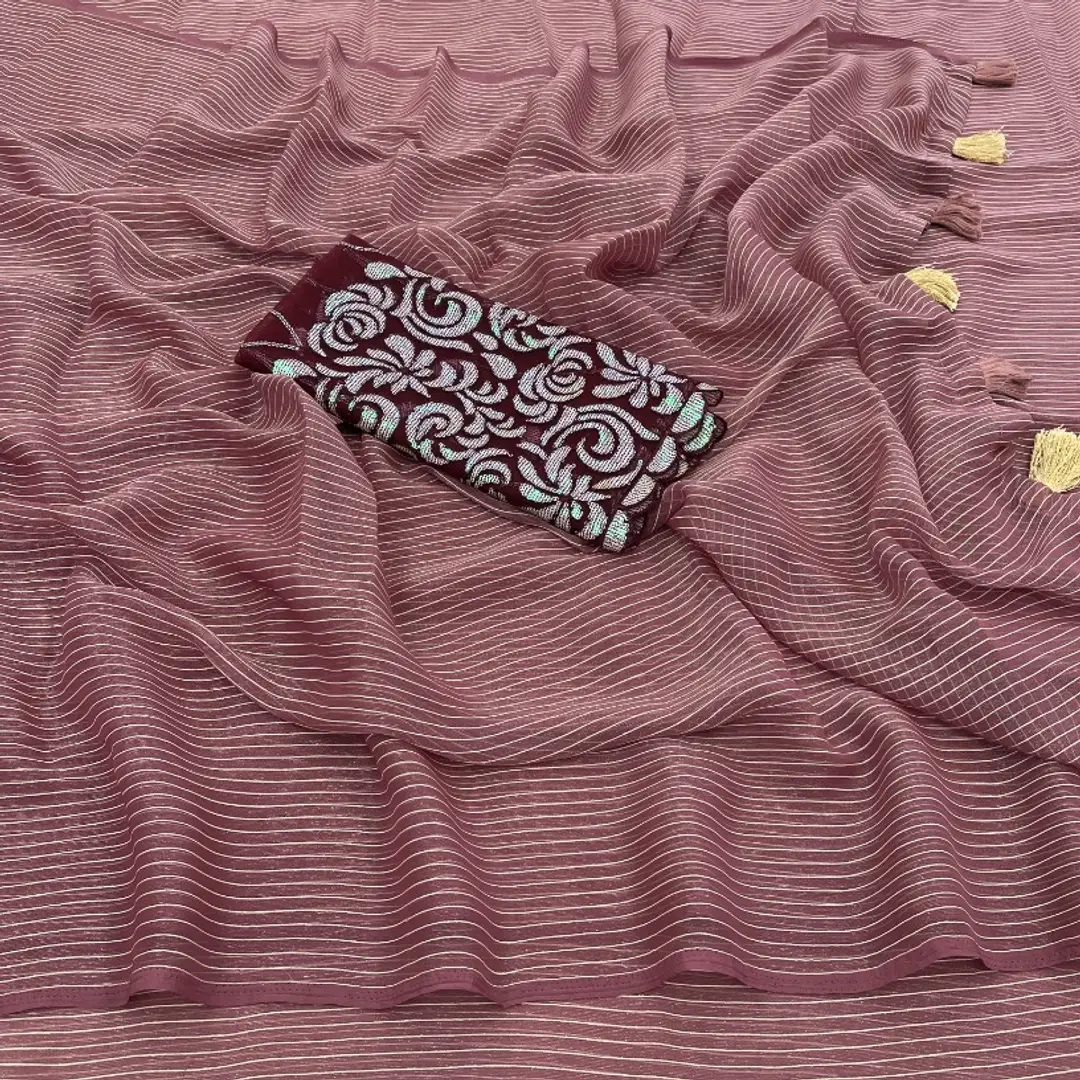 Chiffone Saree With Two Tone Soft Fabric With Contrast Blouse.