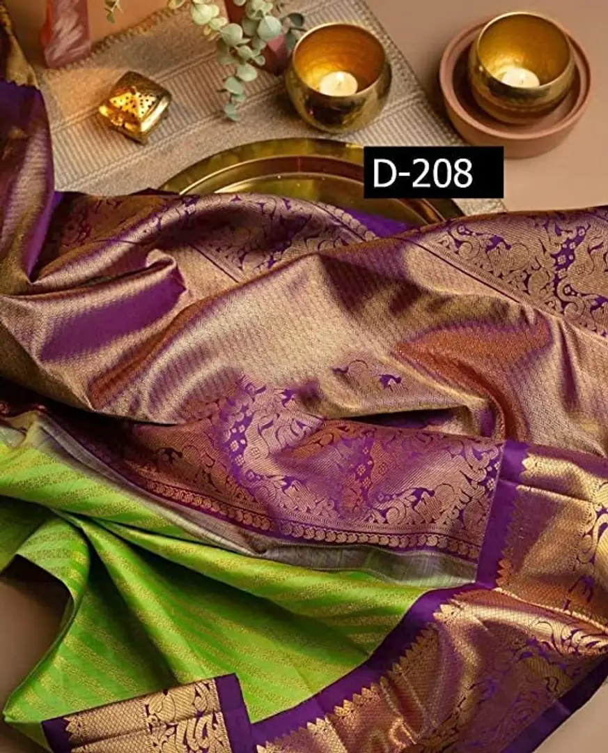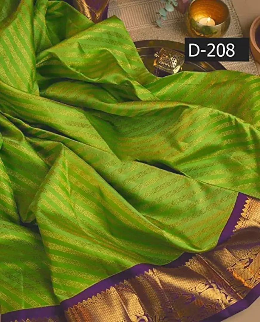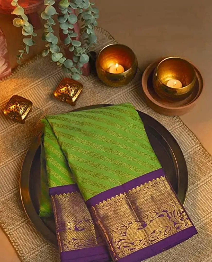 Classy Green Kanchipuram Silk Saree | Indian Ethnic Wear | Traditional Women's Wedding Piece Bollywood Designer