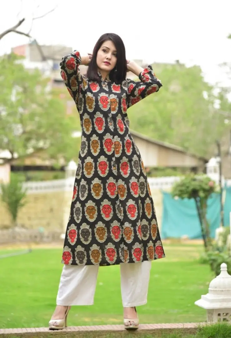 Elite Multicoloured Printed Cotton Women A-Line Kurti