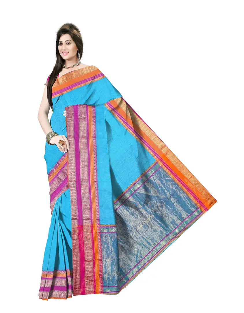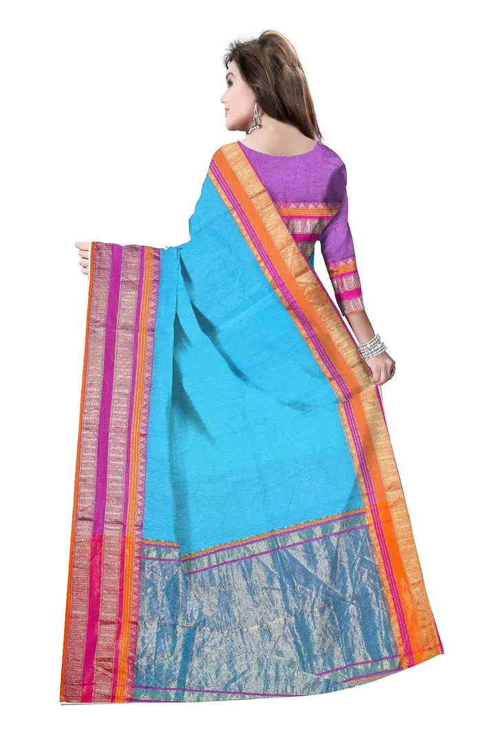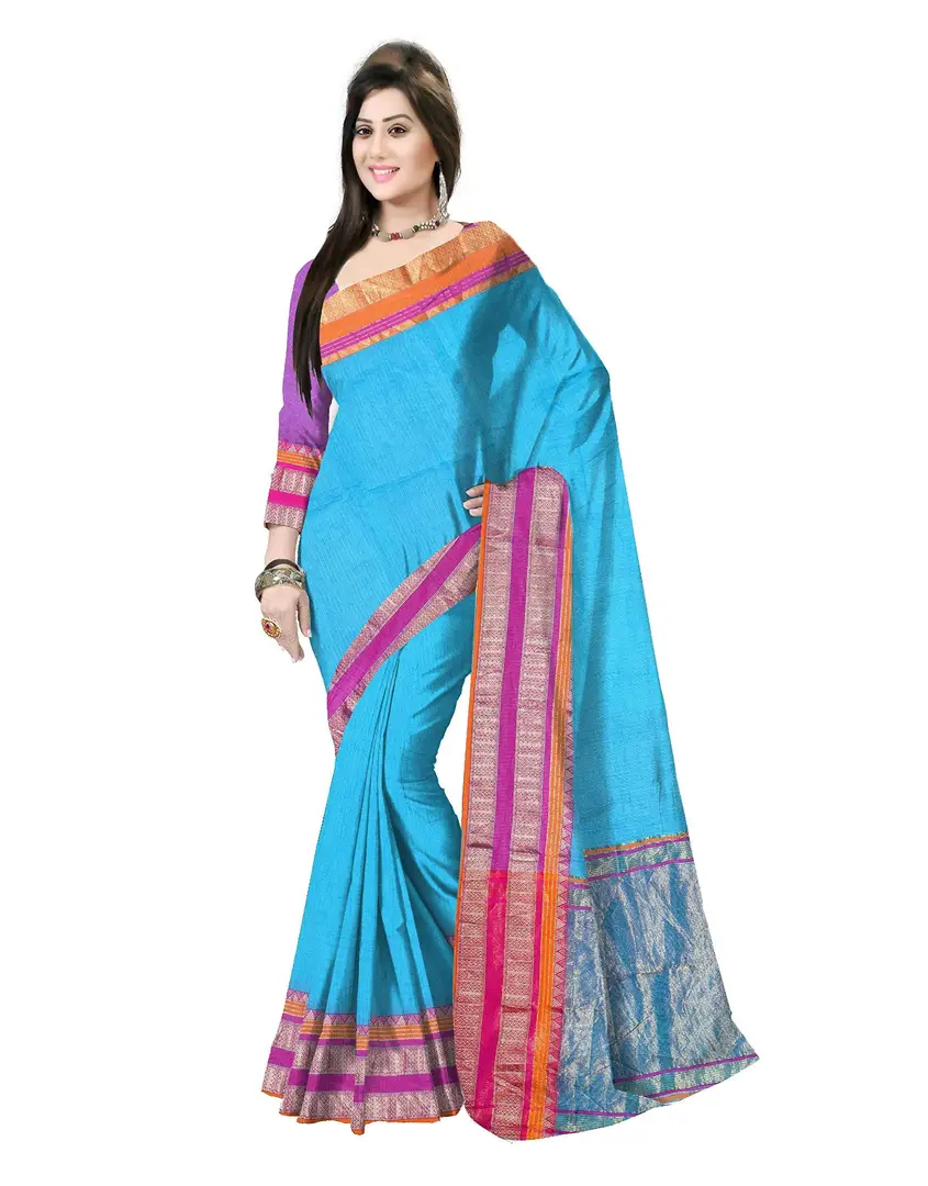 Avushanam Jacquard Border Zari Work Resham Kota Saree With Blouse Piece (Blue) - D285