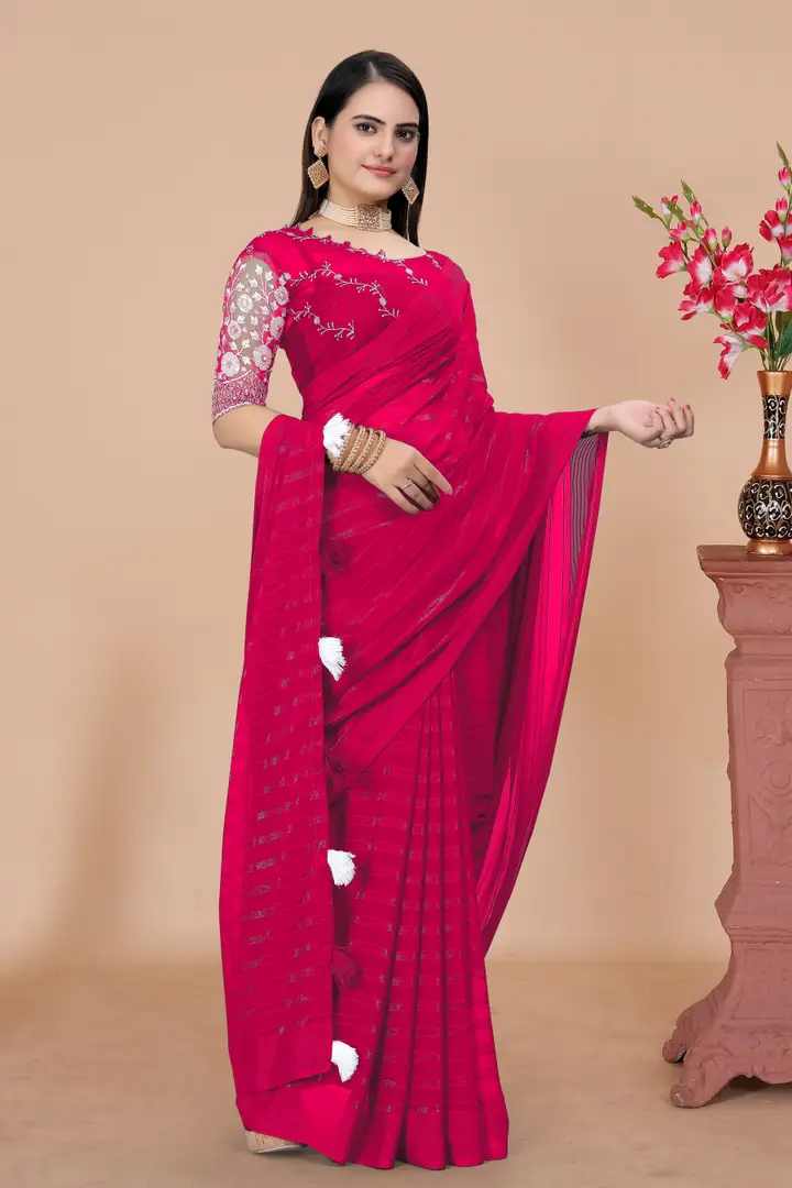Elegant Georgette Saree With Blouse Piece