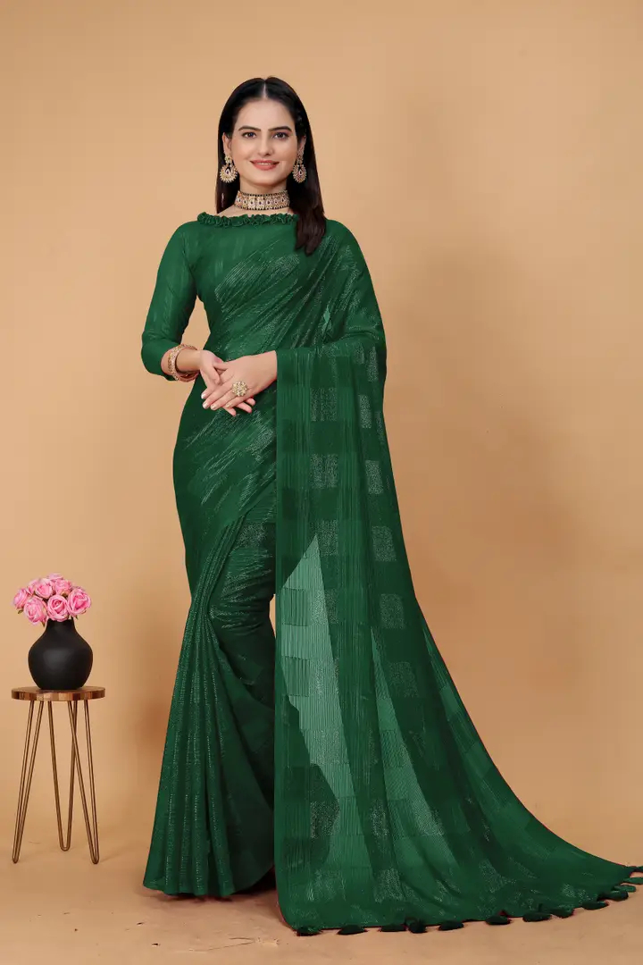 Self Design With Jacquard Chex And Silicon Jari Saree And Self Design Blouse Piece