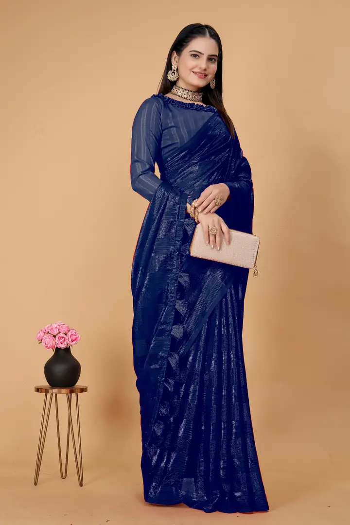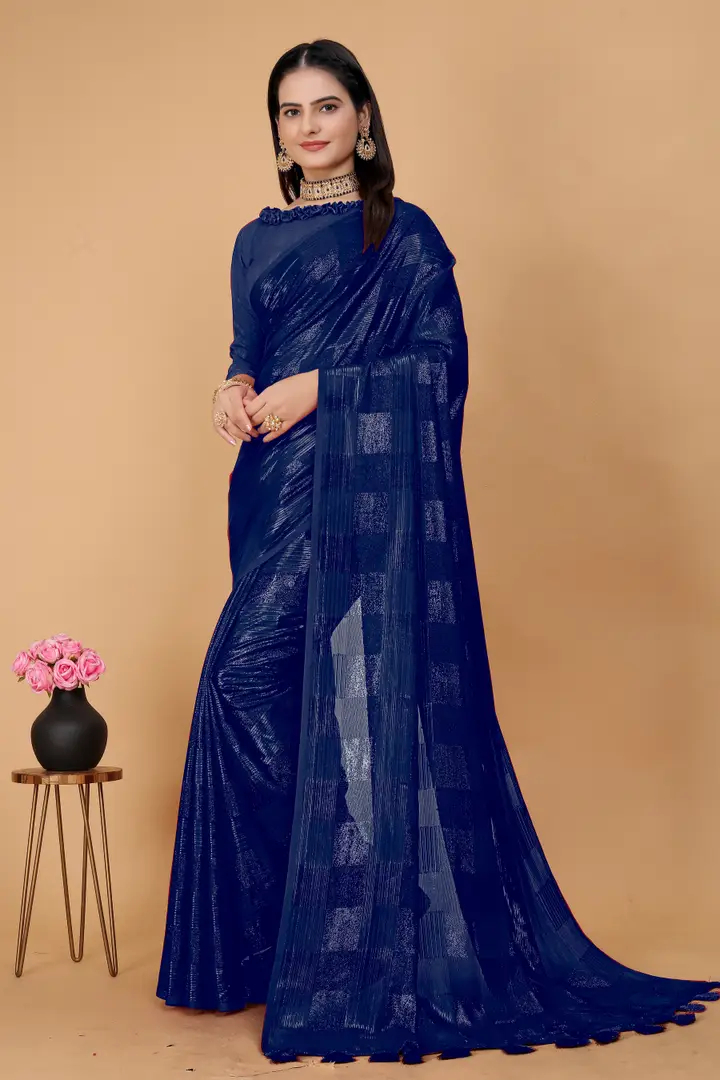 Self Design With Jacquard Chex And Silicon Jari Saree And Self Design Blouse Piece