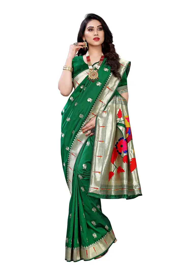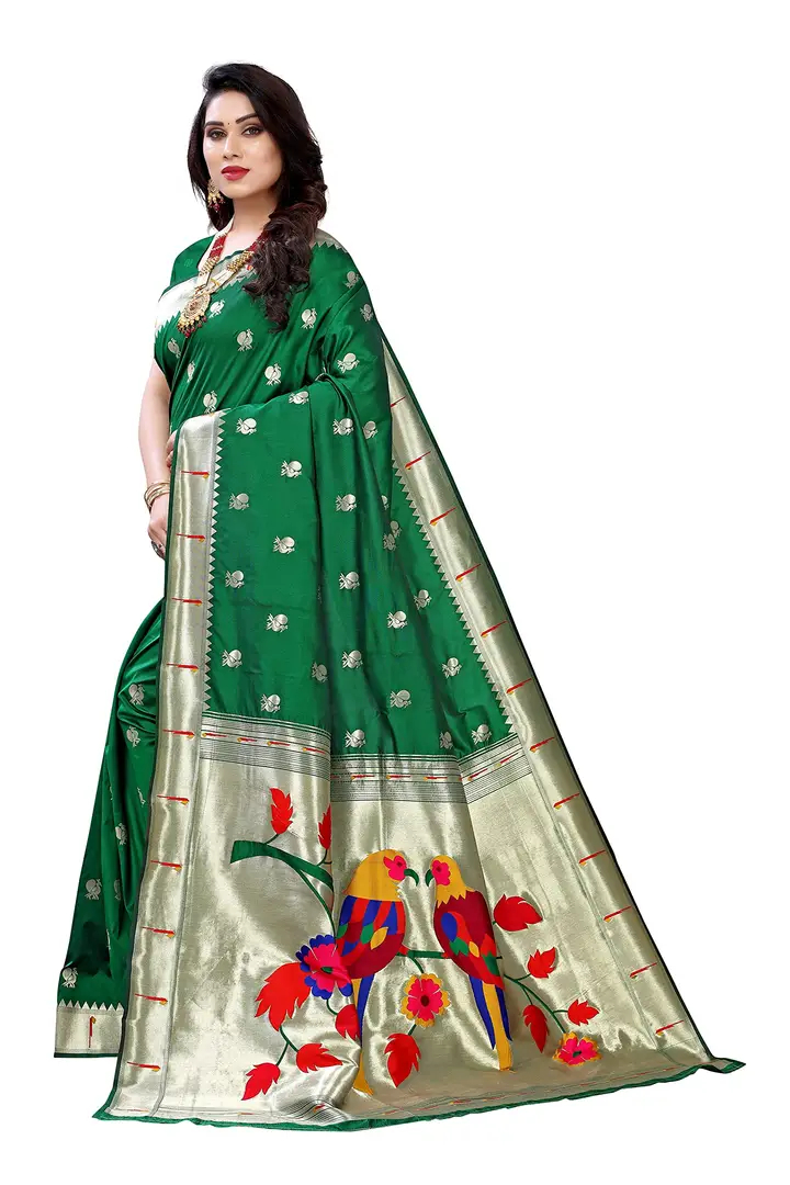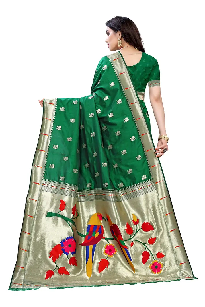 Pandadi Saree Women's Paithani Paithani Silk Saree With Blouse Piece (184PS_Green)