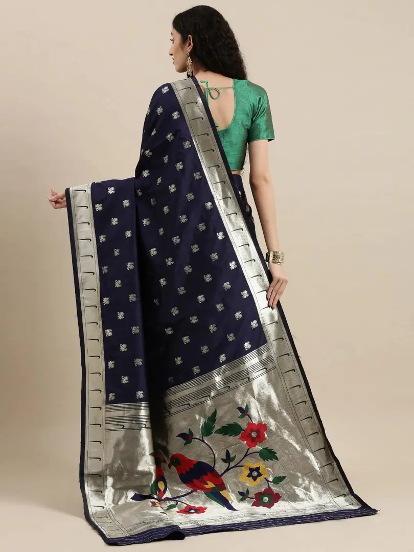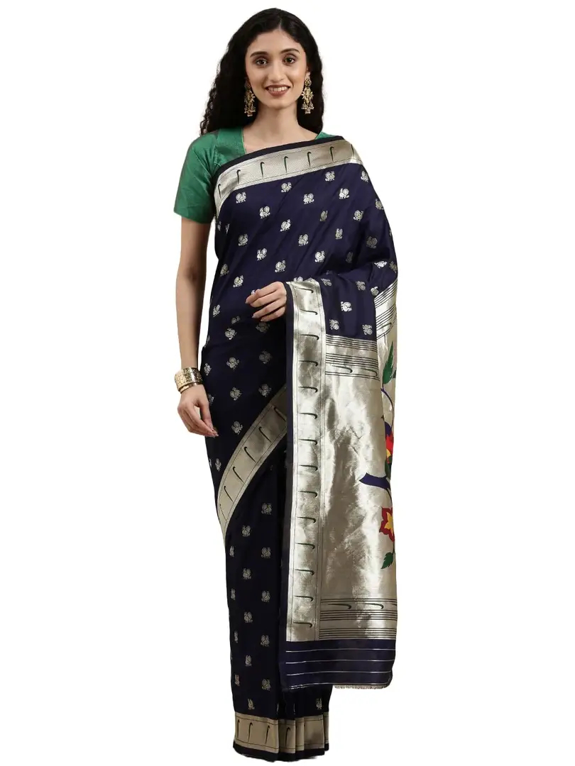 Pandadi Saree Women's Paithani Silk Saree With Blouse Piece