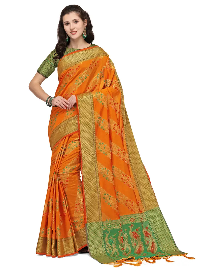 Party Wear Apricot Orange Colour Banarasi Silk Embelished Work Festival Saree