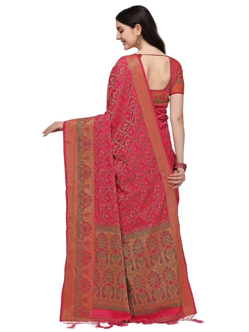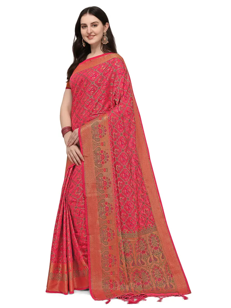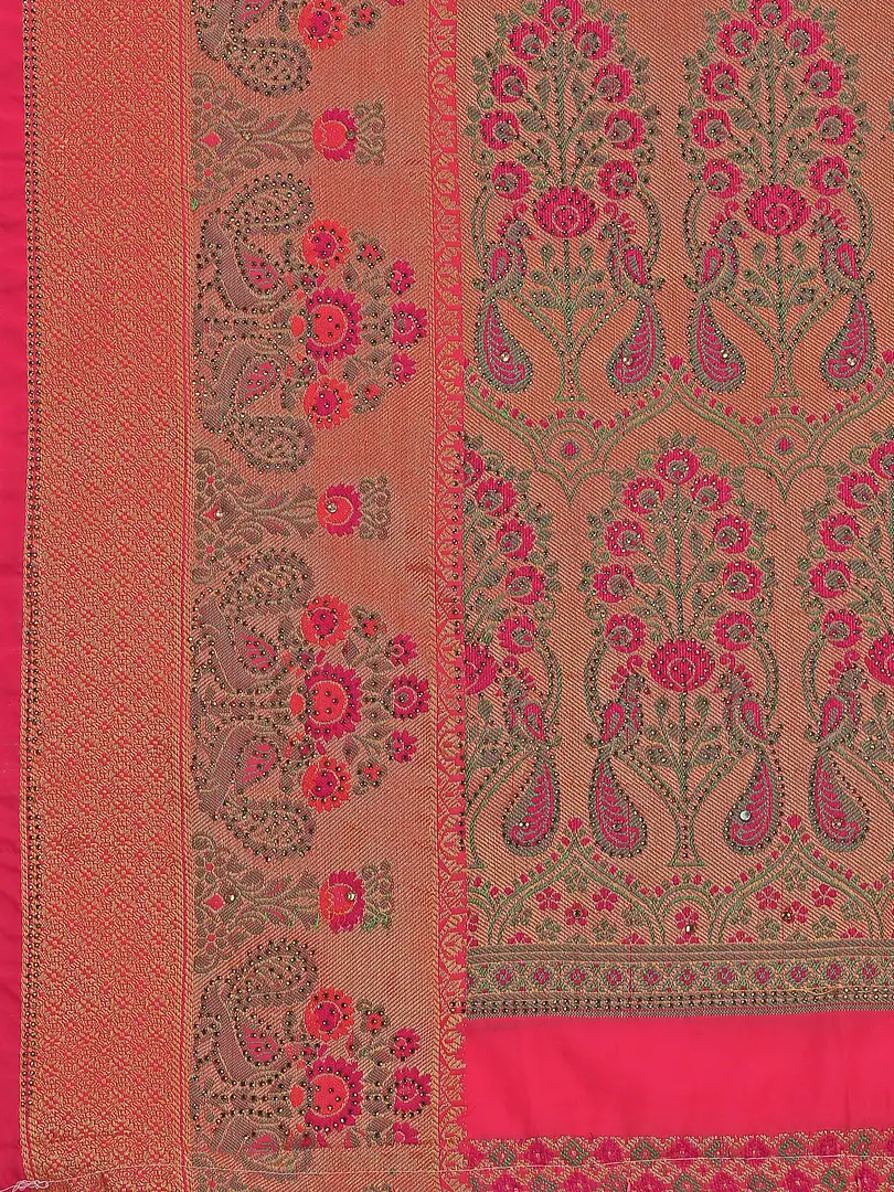 Party Wear Bubble Gum Colour Banarasi Silk Embelished Work Festival Saree