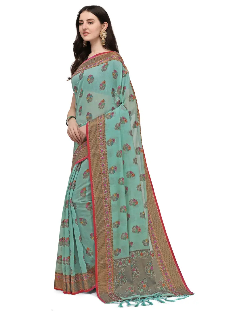 Party Wear Cerulean Colour Woven Silk Embelished Work Festival Saree