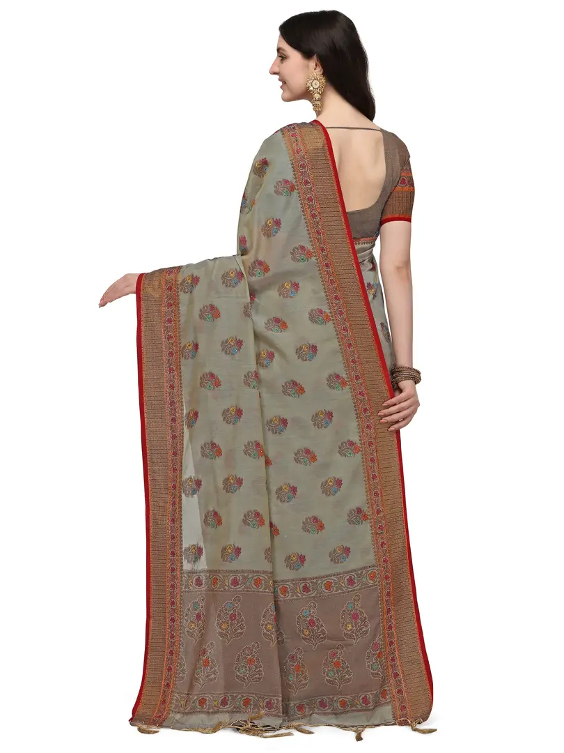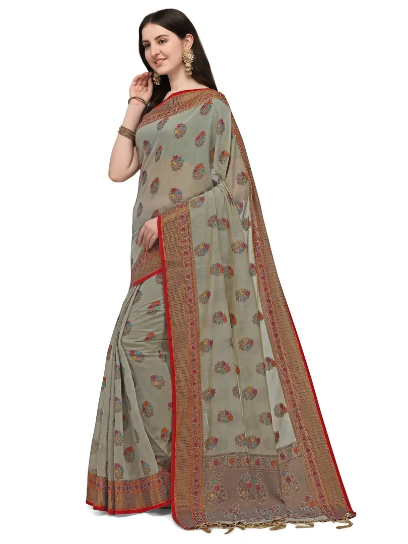 Party Wear Grey Colour Woven Silk Embelished Work Festival Saree