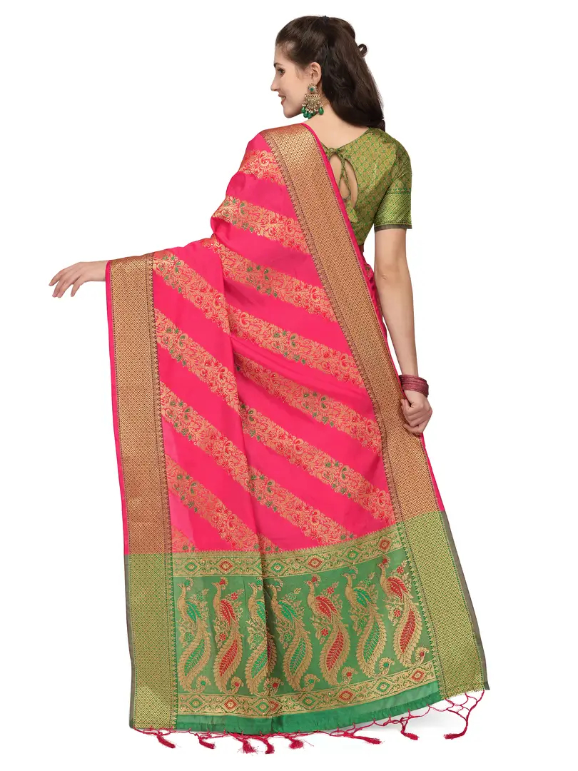 Party Wear Hot Pink Colour Banarasi Silk Embelished Work Festival Saree
