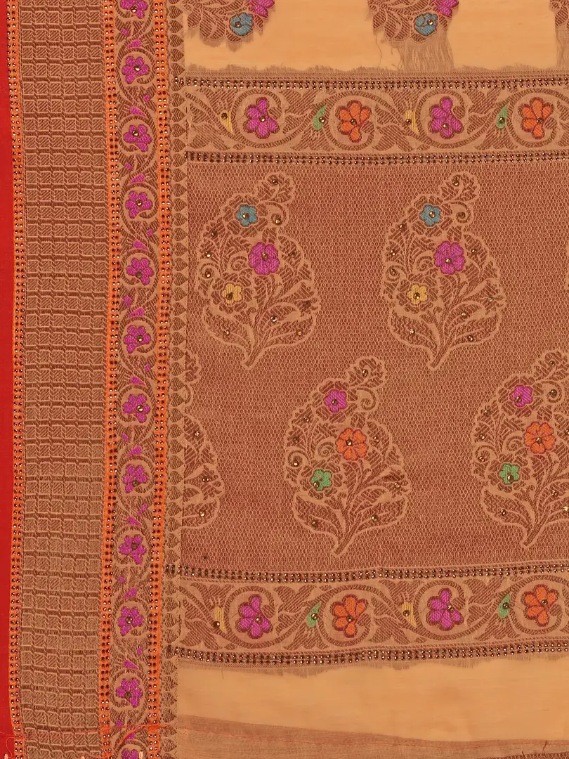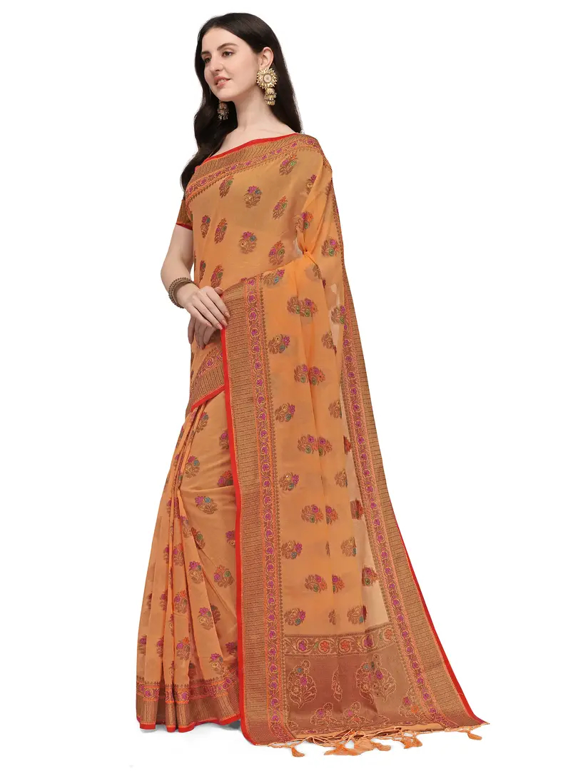 Party Wear Orange Colour Woven Silk Embelished Work Festival Saree