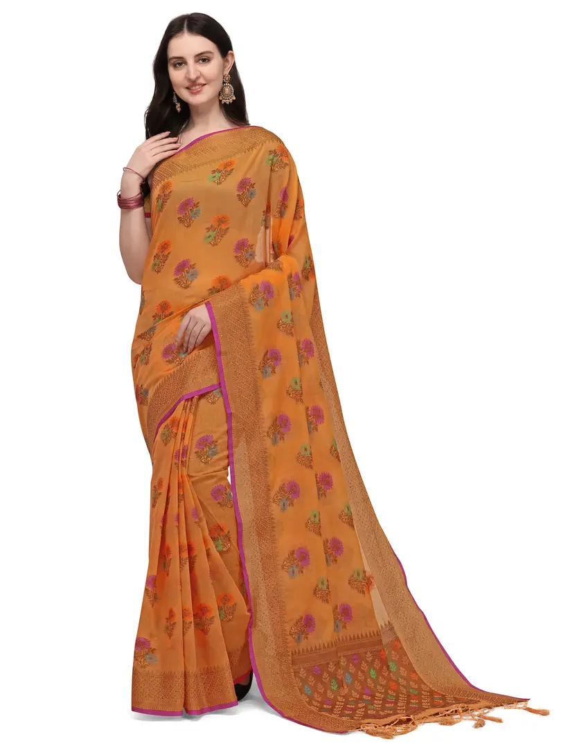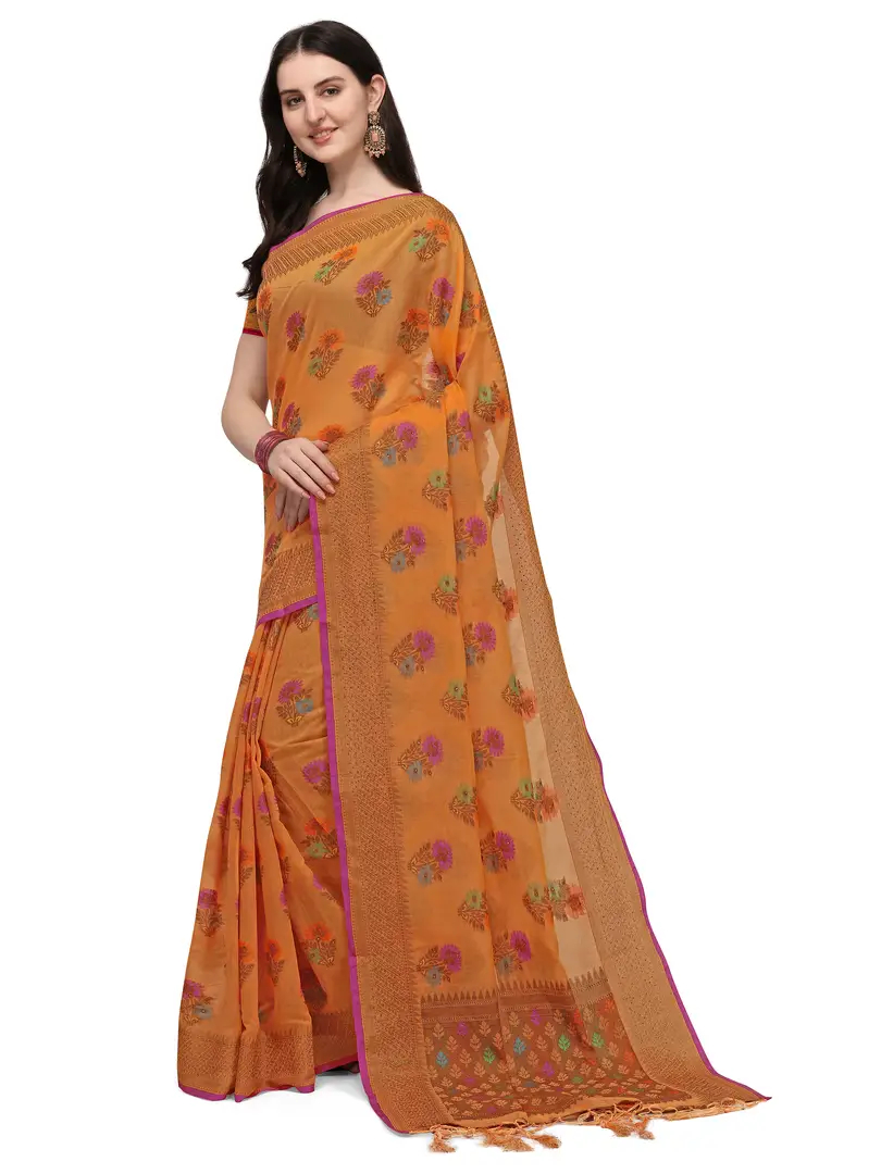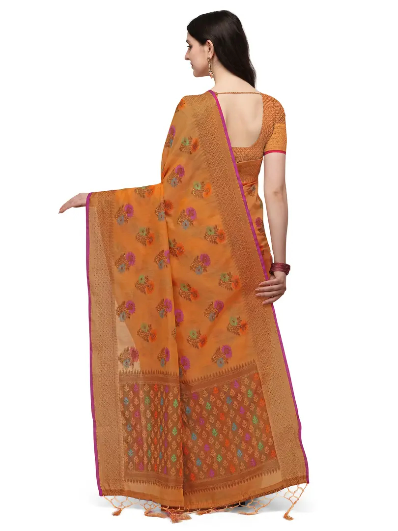 Party Wear Orange Colour Woven Silk Embelished Work Festival Saree